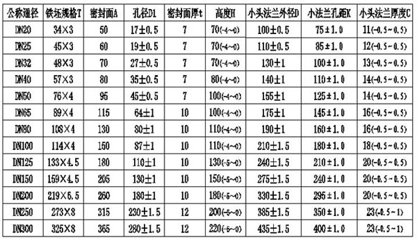鋼襯四氟管道管件-正四通參數(shù)表